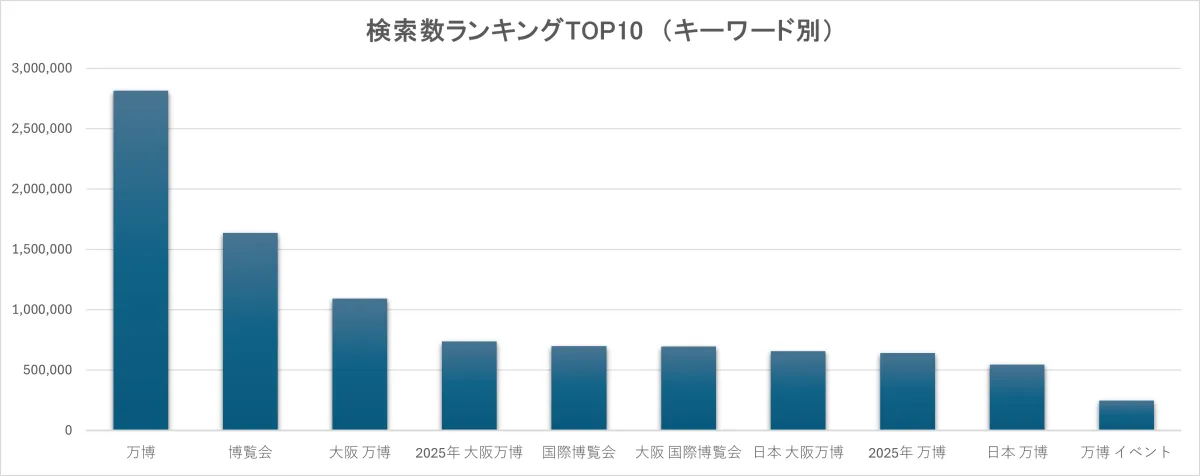 フランスの「Japan Expo」開催により、日本と大阪・関西万博の関連に対する検索数が急増しました。特に大阪・関西万博の地名や年号が含まれたキーワードが増加していることは、日本文化への関心が高まっている証拠です。このように、日本文化と万博が相互に影響し合う様子が伺えます。