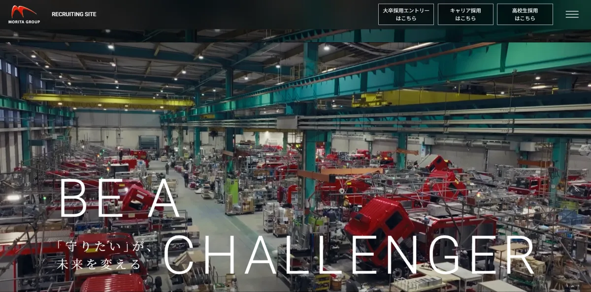 このリニューアルにあたり、モリタグループは新たな採用キャッチコピーを掲げました。「BE A CHALLENGER『守りたい』、が未来を変える」というメッセージには、社員一人ひとりが感じる「守りたい」という想いが大きな挑戦の原動力になるという意義が込められています。このようなメッセージを通じて、企業のパーパスに対する理解を深めてもらえる構成を心掛けました。