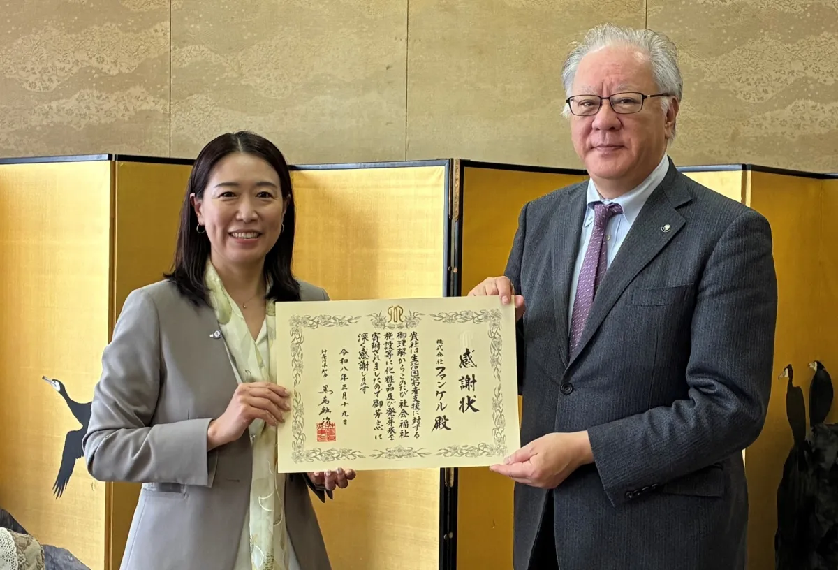 ファンケル株式会社が神奈川県から生活困窮者支援の取り組みを評価され、感謝状を受け取りました。この贈呈は、2023年3月19日(木)に神奈川県庁本庁舎にて行われ、神奈川県の首藤健治副知事から贈られました。