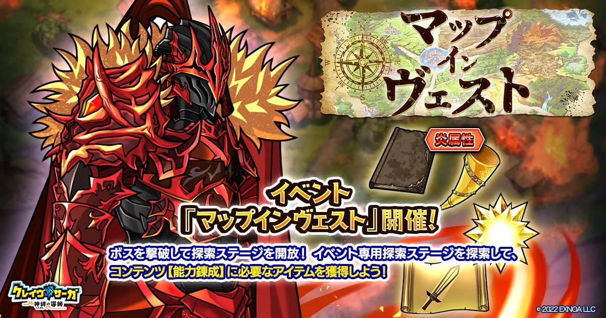 合同会社EXNOAが提供するRPG『クレイヴ・サーガ 神絆の導師』では、2023年6月12日より新しいイベント「マップ・インヴェスト」が開始されました。このイベントは、プレイヤーが専用マップを攻略することで得られる各種アイテムを集めることが主な目的です。特に、特別エピソードを含む豪華報酬が用意されている点が魅力です。