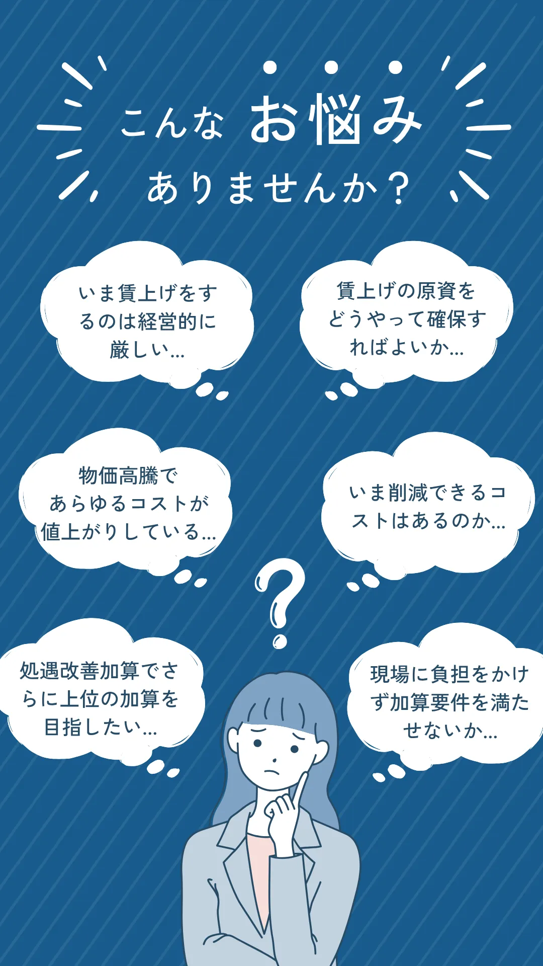 - - 薄利多売の状態を改善し、給与原資を確保しつつ人材を定着させたい管理者や施設長