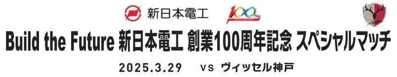 新日本電工株式会社はこの2023年に創業100周年を迎え、これを記念して特別なサッカーイベントを企画しています。このイベントは、3月29日(土)に行われる2025明治安田J1リーグの第7節、対ヴィッセル神戸戦に併せて開催されます。試合は15:00のキックオフ、12:00に開場となりますので、入場時の混雑を避けるためにも、時間に余裕を持ってお越しください。
