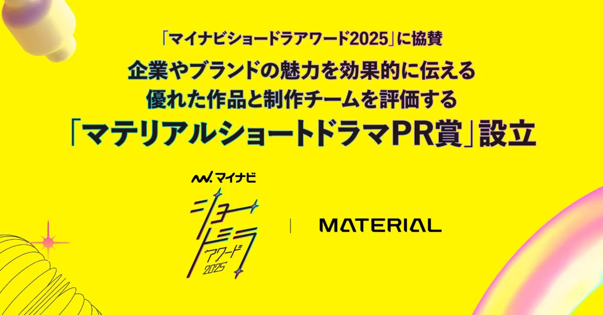 2025年4月16日に開催予定のショートドラマコンペティション「マイナビショードラアワード2025」に、株式会社マテリアルが協賛することが決定しました。このコンペティションは、クリエイターと役者が新しい形で出会う場を提供し、特に“縦型ショート動画”に焦点を当てています。新しいドラマの創造を促す本プロジェクトでは、マテリアルが初の「マテリアルショートドラマPR賞」を設立しました。この賞は、企業やブランドの特徴を見事に表現した作品に贈られ、取締役の関航氏が審査を担当します。