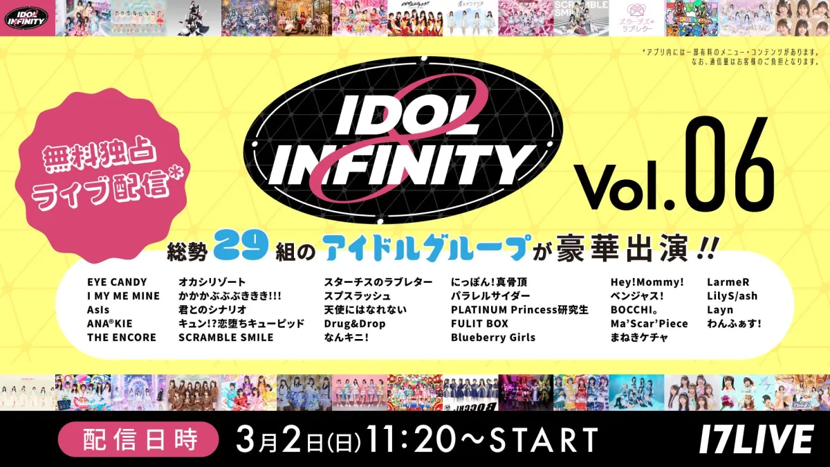 2025年3月2日(日)、日本のアイドルシーンで話題を集めるイベント『IDOL ∞ INFINITY vol.6』が、東京・CITY HALL & GALLERY GOTANDAにて開催されます。このイベントは、人気のアイドルグループが29組も参加し、それぞれの魅力を存分に発揮するスペシャルなライブです。特に注目なのが、この公演が17LIVEで無料で独占配信されるという点です。