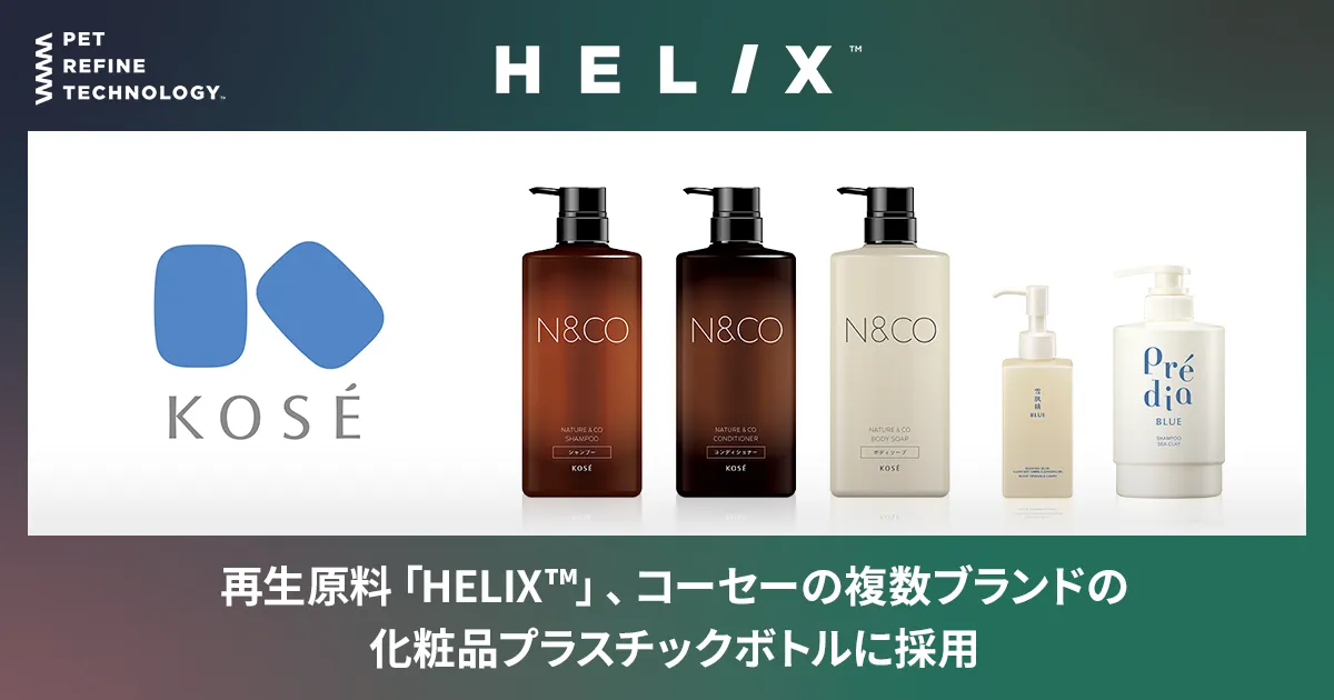 コーセーは「美しい知恵 人へ、地球へ。」という企業理念のもと、経営のあらゆる面でサステナビリティを重視しています。2022年から「HELIX™」の採用をスタートし、現在では「雪肌精 BLUE」や「Prédia BLUE」など複数のブランドでの使用が進められています。これにより、資源循環と環境負荷の低減に貢献しているのです。
