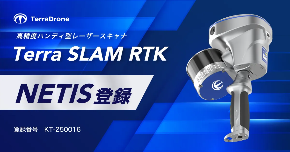 テラドローン株式会社は、SLAM技術を駆使した高精度ハンディレーザスキャナ「Terra SLAM RTK」を国土交通省の新技術情報提供システム(NETIS)に登録したことを発表しました。これは、公共工事での新しい技術提案の促進や導入機会の拡大を狙った取り組みです。