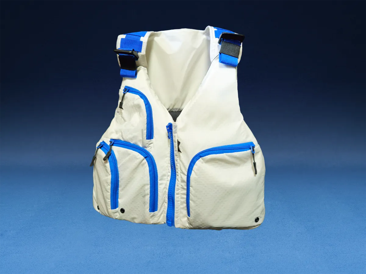 郡上鮎の会が開発したライフベストは、従来の手動膨張式ではなく、常に浮力を保つ「常時浮力型」です。この設計により、落水直後から浮力を得ることができ、選手が混乱の中でも安心して浮かぶことができます。また、鮎友釣り特有の「腰ベルトスタイル」に適応したデザインで、長時間の着用でも快適さを維持します。