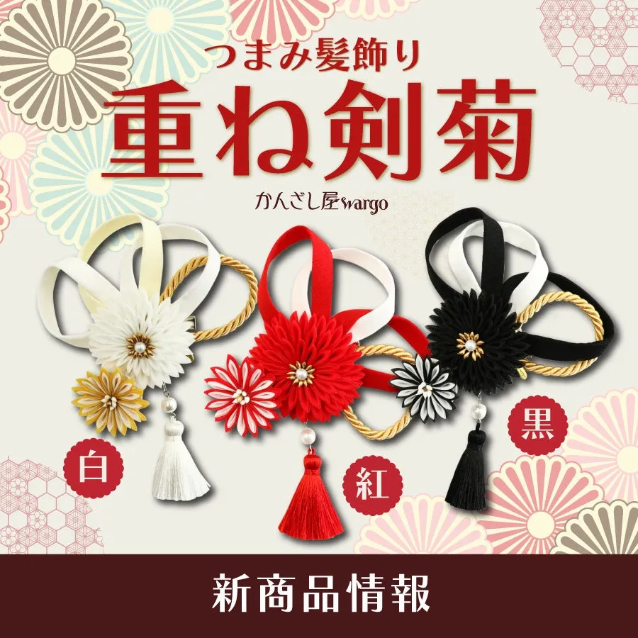 株式会社和心は、12月6日(金)より、自社運営する「かんざし屋wargo」の各店舗とオンラインショップ「The Ichi」にて新しい髪飾り「重ね剣菊」を発売します。この商品は、日本の伝統工芸「つまみ細工」を巧みに使った職人手作りの一品です。