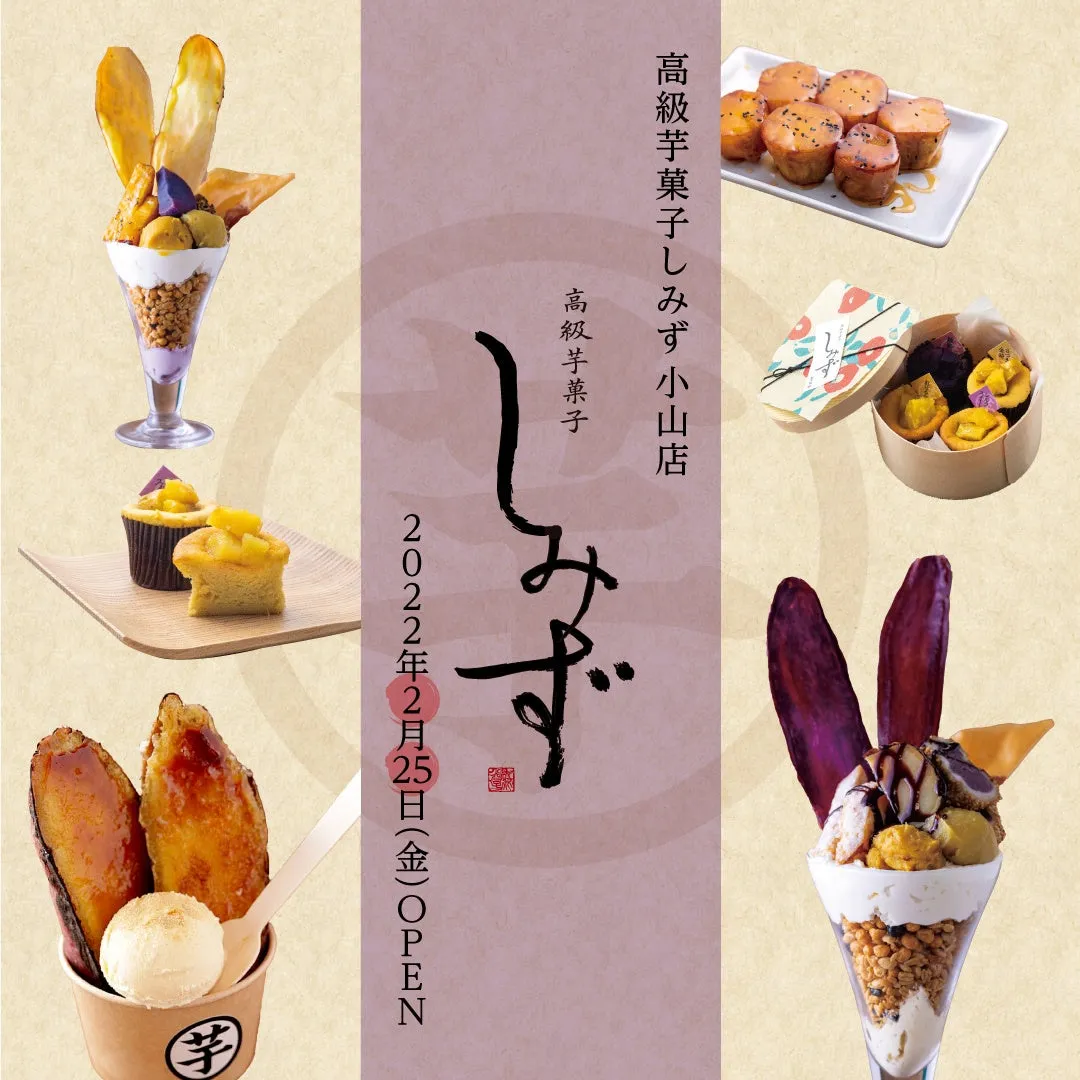 2022年2月25日、栃木県小山市中央町に「高級芋菓子しみず」が第1号店としてオープンしました。さつまいもスイーツ専門店として名を馳せるこのブランドは、全国38店舗を展開中。今やテレビや雑誌、SNSで多くの話題を集めていますが、多くの人々を惹きつける理由はそのこだわりの製品にあります。