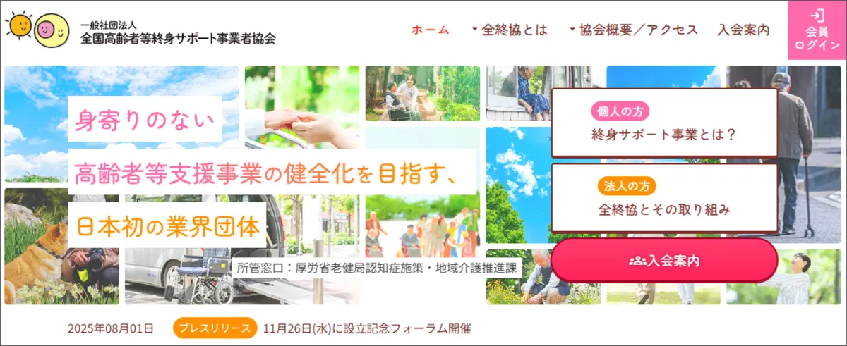 2025年11月25日、一般社団法人全国高齢者等終身サポート事業者協会が公式ウェブサイトを公開しました。この新しいサイトは、身寄りのない高齢者などの支援を目的とした重要な情報発信の基盤となっています。