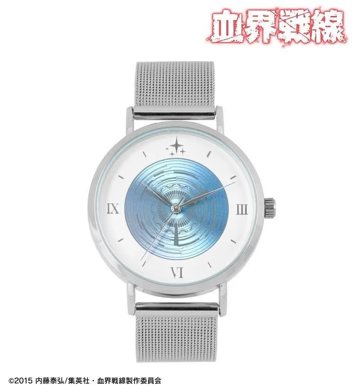 まず、腕時計にはふたつのデザインがあります。ひとつ目は「レオナルド・ウォッチ」。その特徴は、盤面中央に“神々の義眼”をあしらった独特なデザインです。カラーはシルバーで、メタルバンドとの組み合わせが、シックで洗練された印象を与えます。シルバーパーツを繊細に使い、シンプルでありながらアイキャッチ力のある綺麗なシルエットが特徴です。仕様としてはクオーツ式で、防水は非防水となっており、デイリー使いから特別なイベントまで幅広く活躍することでしょう。