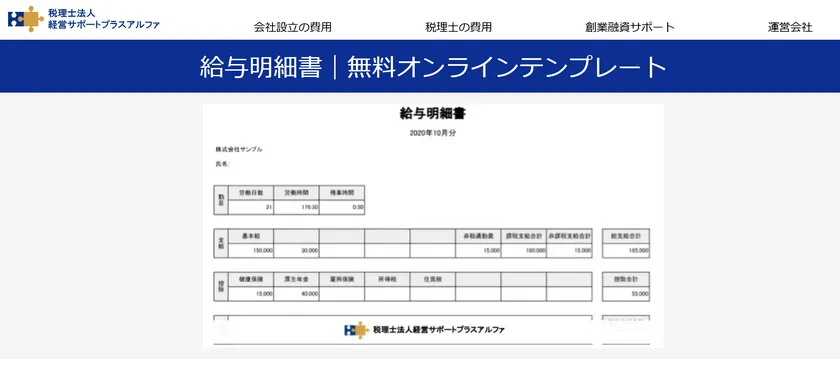 「給与明細書|無料オンラインテンプレート」の他にも、経営サポートプラスアルファでは多くのWebツールが用意されています。詳細を知りたい方は、同社の公式ウェブサイトで、各種サービスについて確認してみてください。