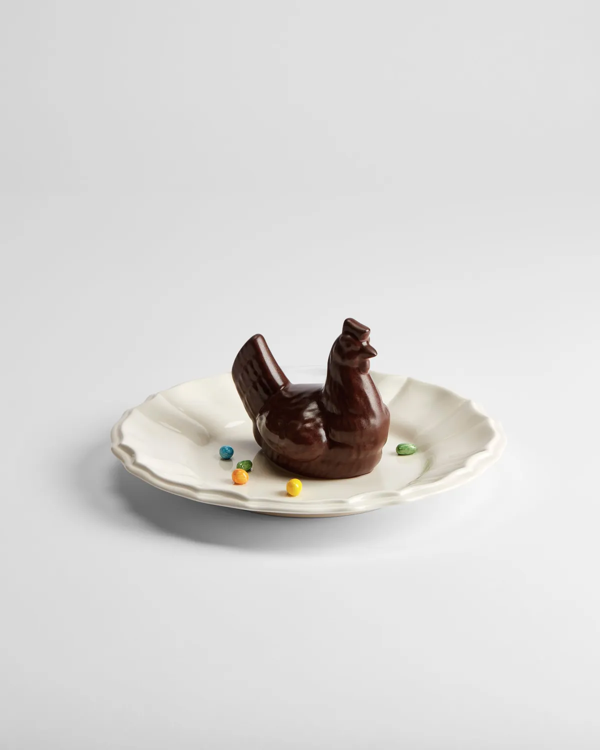 ディオール メゾンが新たに発表したイースタープレートは、18世紀の伝統的な「トロンプルイユ」アートにインスパイアされた作品です。このコレクションには、色鮮やかな卵と共に、リアルに再現された雌鶏が描かれています。これらのモチーフは、まるで絵画のように精緻に仕上げられ、美食と美術が融合した特別な体験を提供します。