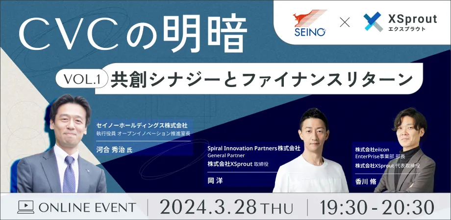 株式会社XSproutが主催する定期開催の対談イベント「CVCの明暗」は、コーポレートベンチャリングを実践するプレイヤーに向けて、価値ある知見とノウハウを提供する場です。2024年3月28日に開催される第一回「CVCの明暗 ~共創シナジーとファイナンスリターン~ VOL.1」について詳しくご紹介します。