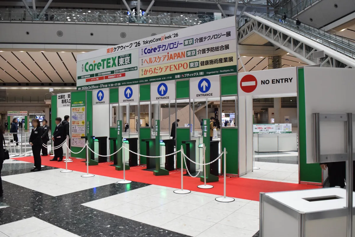 この新サービスの導入例として、ブティックス株式会社様が東京ケアウィーク’26でナック電子のゲートを使用したことが挙げられます。これにより、来場者の安全な入場と退出が確保され、イベント全体の管理が一層スムーズになりました。