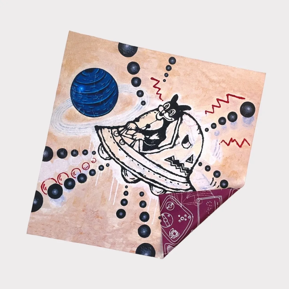 今回のコラボクロスは、表面と裏面で異なるデザインを楽しむことができます。表面は、TAM-TAMさんの「星を創るネコ」が描かれた可愛らしいデザインとなっています。一方、裏面は、TAM-TAMさんが無の状態からペンを走らせたという貴重な作品となっており、遊び心と大人の風合いが漂うクールなデザインとなっています。