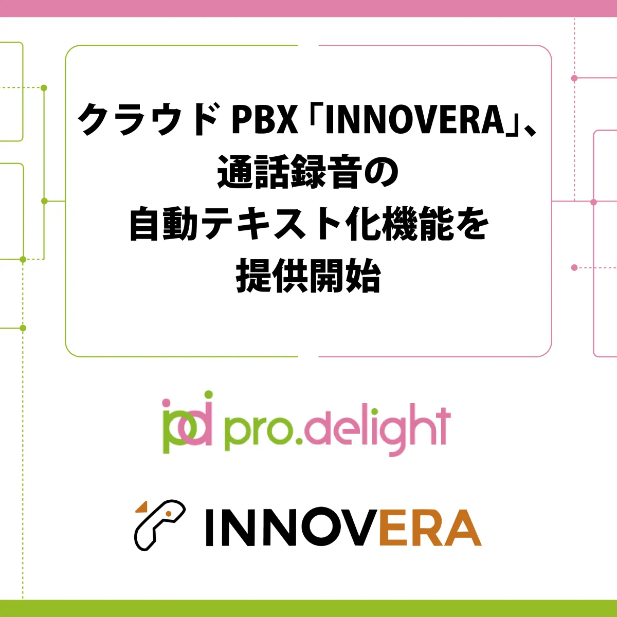 株式会社プロディライトが提供するクラウドPBX「INNOVERA」が、通話録音の自動テキスト化機能「Call to Text」を新たに導入しました。この新機能は、企業が日常的に行う電話応対業務をより効率的にすることを目的としています。