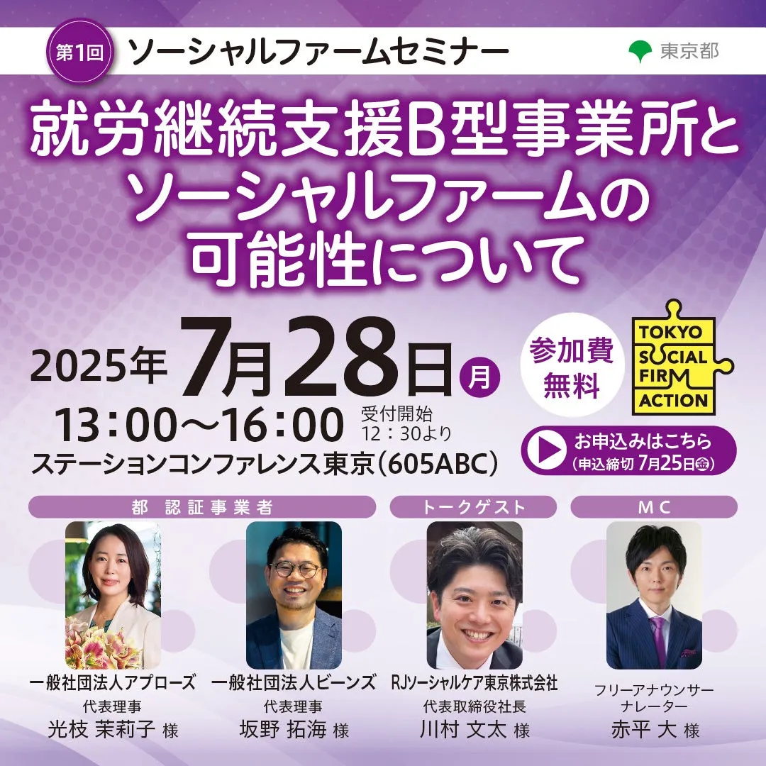 東京都は2025年7月28日、ソーシャルファームに関するセミナーを初めて開催します。このセミナーは、就労継続支援B型事業所とソーシャルファームが持つポテンシャルについて学ぶ絶好の機会です。ソーシャルファームは、様々な理由で就労に困難を抱える方々が、自律的に経営を行う社会的企業です。これは単なる雇用の場を提供するだけでなく、彼らが活躍できる場を築くものとして期待されています。