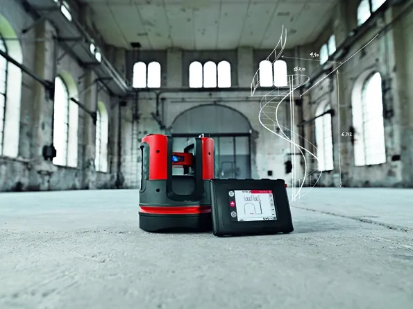 『Leica 3D Disto』は、自動回転モーターと自動水準器を搭載した高精度なレーザー距離計です。本体を床などに設置し、コントローラーを見ながらレーザー照射することで、部屋の角などの測定を容易に行えます。測定データはDXF形式で保存されるため、CADソフトとの連携もスムーズです。