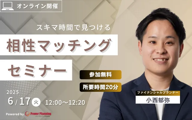 パワープランニング株式会社が提供する無料マネーセミナー「アットセミナー」は、参加者が自分のスケジュールに合わせて気軽に参加できるオンラインセミナーを開催します。特に注目なのが、6月17日(火)12時から行われる「相性マッチングセミナー」です。このセミナーでは、FP(ファイナンシャルプランナー)の小西郁弥が講師を務め、参加者が短い時間の中で自分に合ったFPを見つける手助けをします。