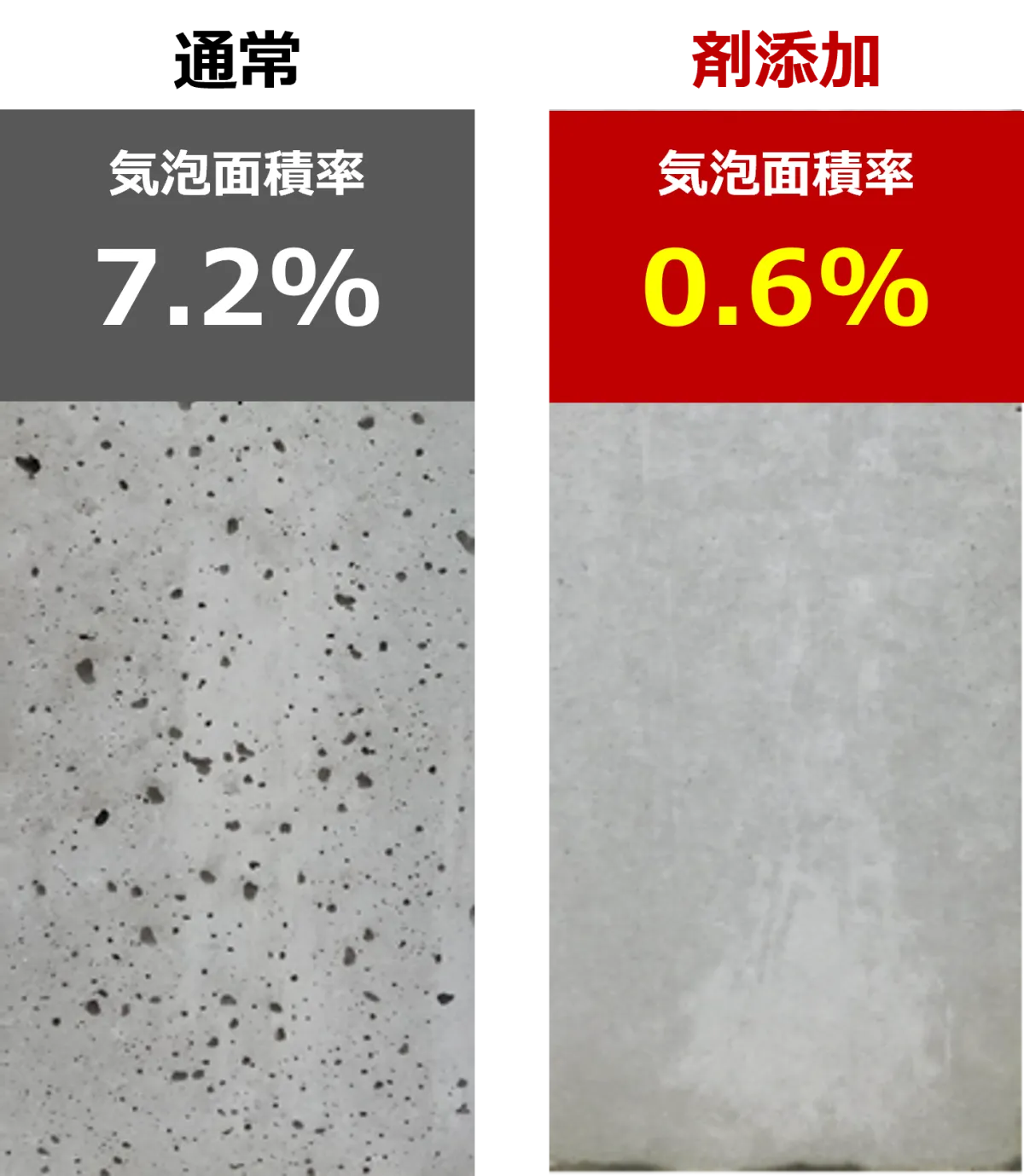 美観向上と省力化: 特殊界面活性剤を応用し、コンクリート表面の気泡痕を減らし、表面補修の作業負担を軽減します。