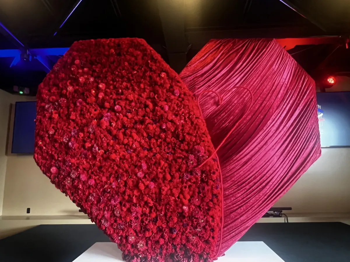 今回の花装飾の中心テーマは「赤い糸」。これは、人と人との見えない絆を象徴するもので、フランスパビリオンのコンセプトである「愛の讃歌」にぴったりと合致しています。このテーマは、パビリオンに訪れるすべての人に、愛とつながりの重要性を伝える役目を果たしています。