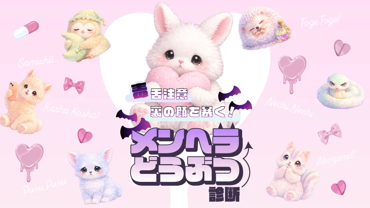 『メンヘラどうぶつ診断』は見た目の可愛さと毒舌のギャップが特徴で、普段はあまり見えない自分の内面を楽しく知ることができる内容が魅力の一つです。参加者は全問回答することで、自分がどの「メンヘラどうぶつ」に分類されるかが分かります。これは、日常生活の中でのストレスや承認欲求を改めて考えるきっかけにもなりそうです。