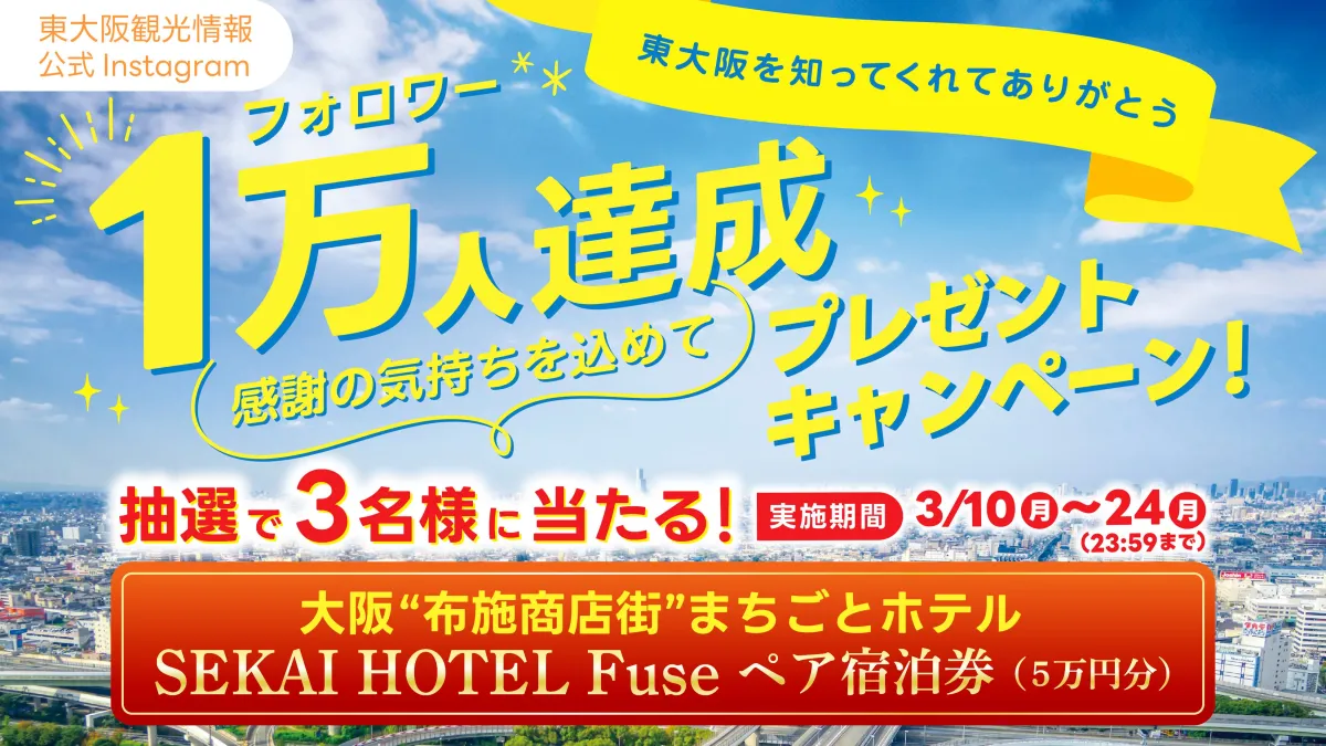 「東大阪を知ってくれてありがとう!フォロワー1万人達成記念キャンペーン」