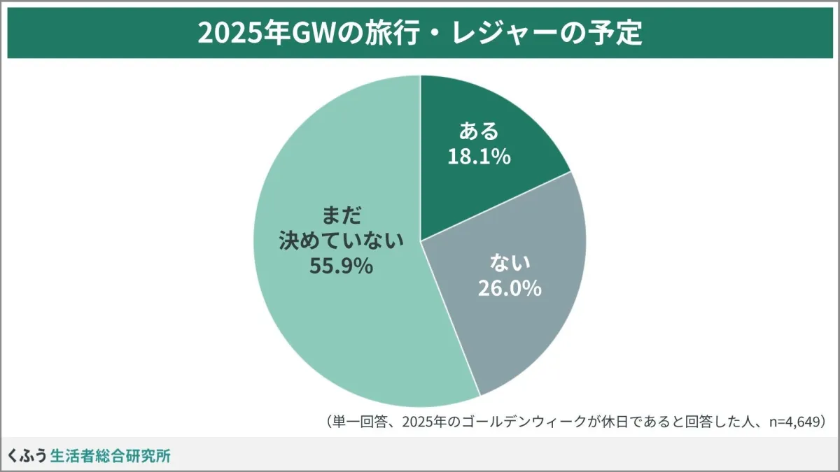 - - 旅行・レジャーの予定:約2割が旅行やレジャーの計画をしており、半数以上は「まだ決めていない」と回答。