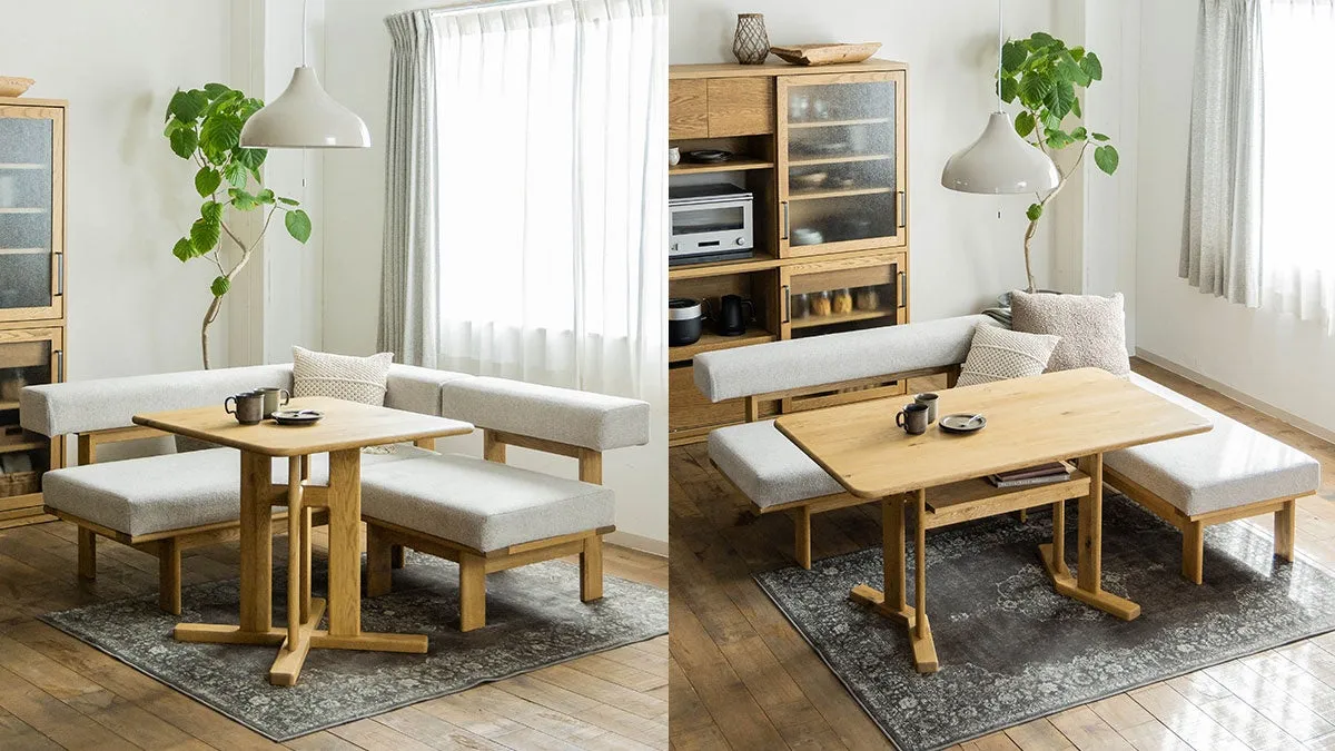 「ハルヒ」シリーズは、現代の住空間において重要なリビングダイニングエリアに焦点を当て、食事とくつろぎの両方を実現するために設計されています。モジュールタイプの特徴を生かし、パズルのように自由に組み合わせることができるのが大きな魅力です。各サイズのテーブルとベンチの組み合わせにより、家族構成やライフスタイルに応じて理想的な空間を形成します。