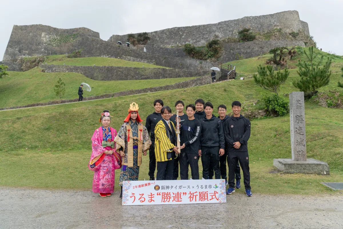 阪神タイガースは毎年沖縄県宜野座村で一軍の春季キャンプを行い、2023年からは新たにうるま市がファームの春季キャンプ地に加わりました。うるま市には世界遺産に登録された「勝連城跡」が存在し、ここはかつて15世紀に海外貿易で栄えた阿麻和利が拠点とした難攻不落の城として知られています。市はこの地を「勝利のパワースポット」として活用し、昨年の春季キャンプにも選手が訪れ必勝祈願を行ったことで、昨年はセ・リーグ優勝を果たしました。