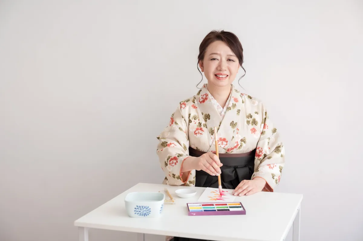 この講座を開発したのは、30年以上の指導実績を持つ書家、幹弓華凰(みく・かこう)先生です。ある日、日本画の練習中に色を含んだ筆で「寿」と書いた瞬間、その色と感情が交じり合ったことがきっかけで新たな“感動”が生まれました。そこから10年をかけ、書道と日本画、水墨画のテクニックを融合させ、現在の「彩り文字」が誕生しました。