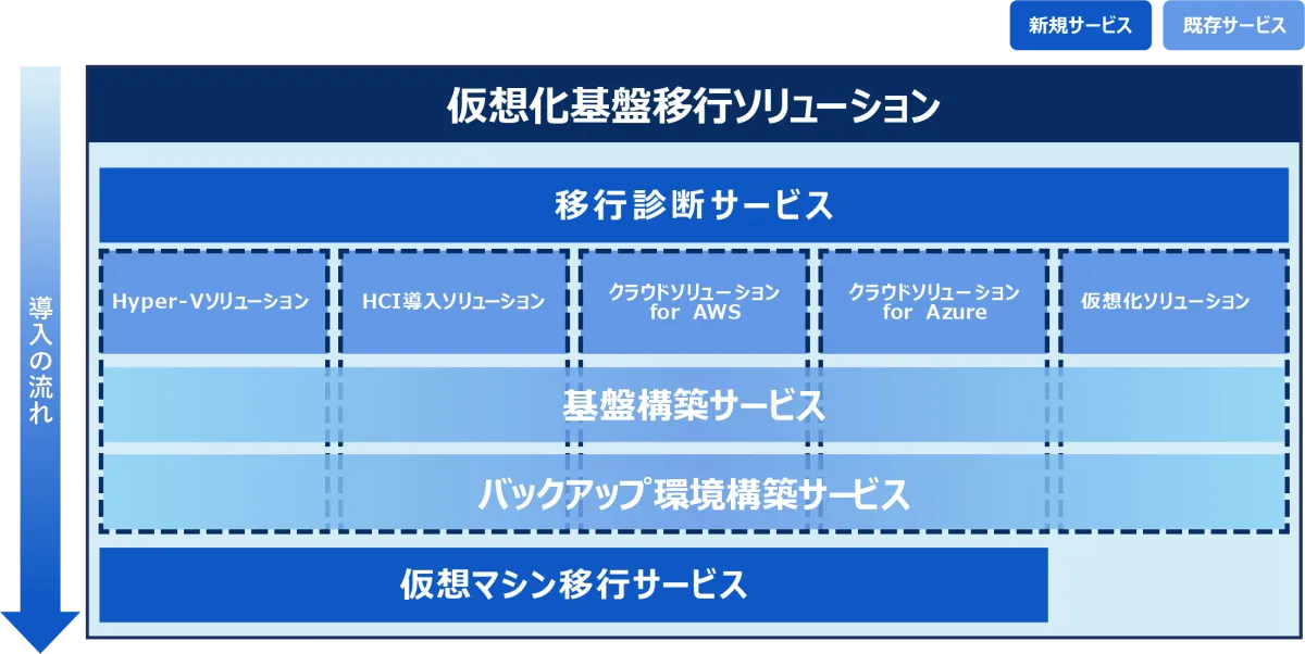 移行診断サービス: 既存の仮想化基盤をアセスメントし、最適な移行先を決定します。これにより、効率的かつ効果的な移行が実現できます。