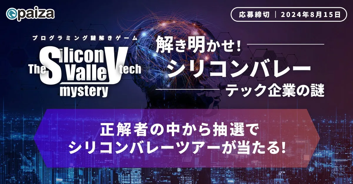 興味のある方は、paizaのウェブサイトからゲームに挑戦して、シリコンバレーの技術の謎に迫ってみてください。応募締切は2024年8月15日まで。自分のプログラミングスキルを試す良い機会であり、同時に豪華賞品を手に入れるチャンスです。