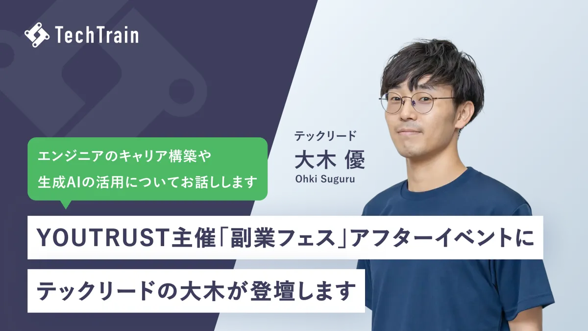 株式会社TechBowlは、株式会社YOUTRUSTが主催する「副業フェス」のアフターイベントにて、テックリードの大木優が登壇することが決定しました。このイベントは2025年3月21日(金)19:30から、YOUTRUSTのオフィスでオフライン形式で行われます。