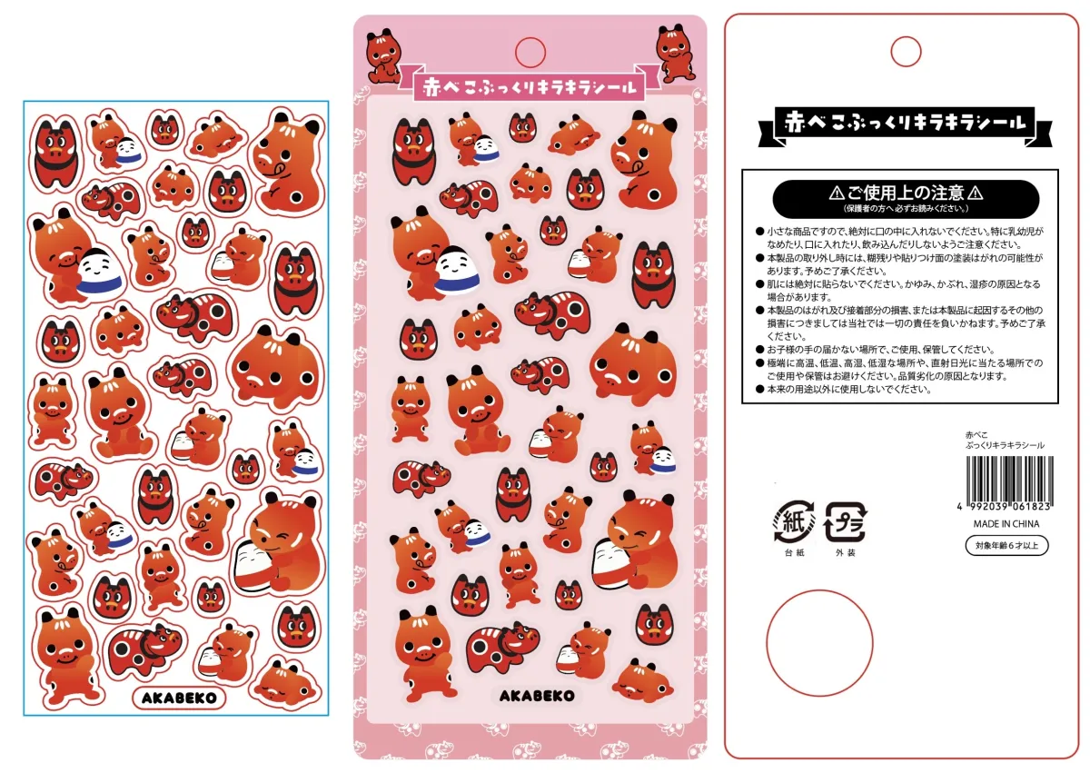 このシールセットは、赤べこの様々なポーズや表情がデザインされています。そのぷっくりとした厚みは、手に持った時の存在感を増し、見る人を魅了します。また、硬めの素材を使用しているため、簡単に凹むことがなくしっかりとした作りになっています。