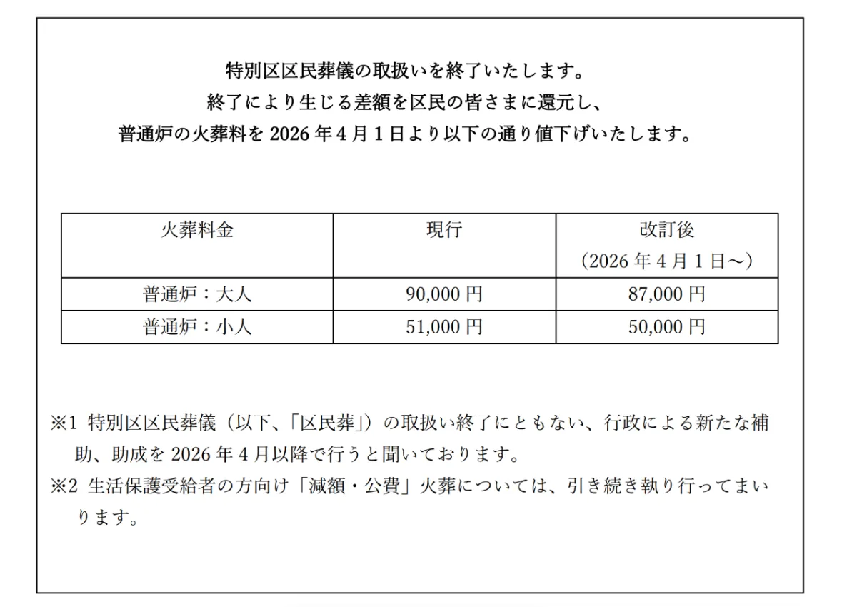 東京博善の新たな葬儀制度の導入と火葬料金の改訂