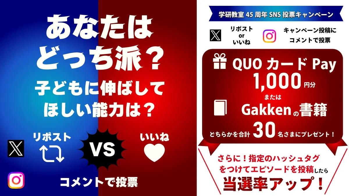 株式会社学研エデュケーショナルは、学研教室開設45周年を迎え、それを記念したSNS投票キャンペーンを開始しました。このキャンペーンは、未来を生きる子どもたちに育んでほしい力をテーマにしており、参加者は自らの思いや意見をTwitterやInstagramで投票して共有することができます。