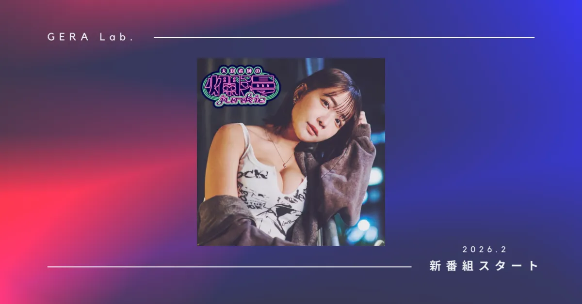 GERAは最近、タレントやアーティストの多様な活動を促進する新しい試みとして「GERA Lab.」という番組枠を設けました。この枠は単なる“お笑い”の枠を超え、リスナーに「笑い」の多様性や可能性を体験してもらうことを目的としています。音声にとらわれない自由な表現方法で、これまでにない新しい体験を提供することを目指しています。