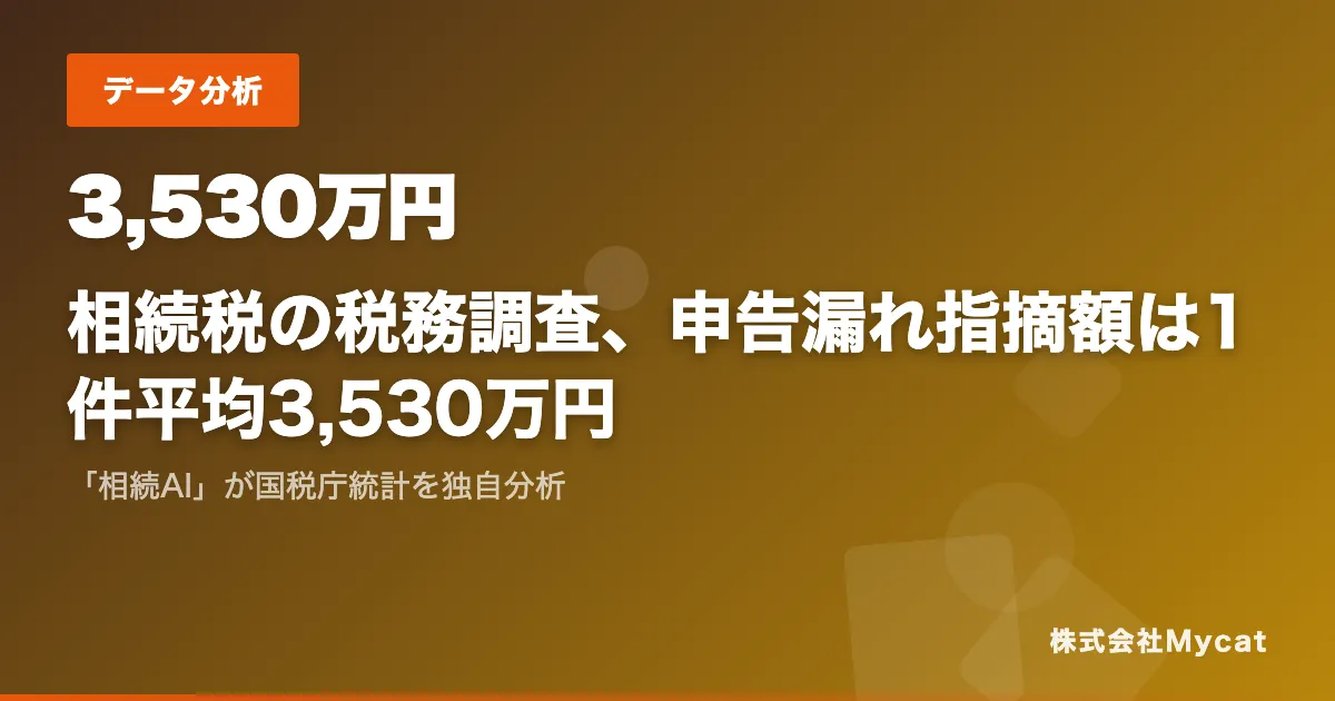 株式会社Mycatが提供する「相続AI」は、相続税に関する重要なデータをまとめたレポートを無料で提供しています。このレポートは国税庁の統計データをもとに、相続税の実態や申告漏れの状況について詳細に分析しています。