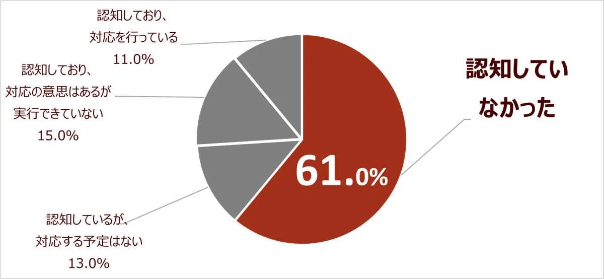 調査によると、製造業従事者の60%以上が「2025年の崖」を認知していないことが明らかになりました。これは、デジタル化への取り組みが遅れていることを示すものであり、企業の競争力を弱める要因となっています。対応策を検討していない企業が多い中、危機感を持つ経営層が少ないことが浮き彫りになりました。