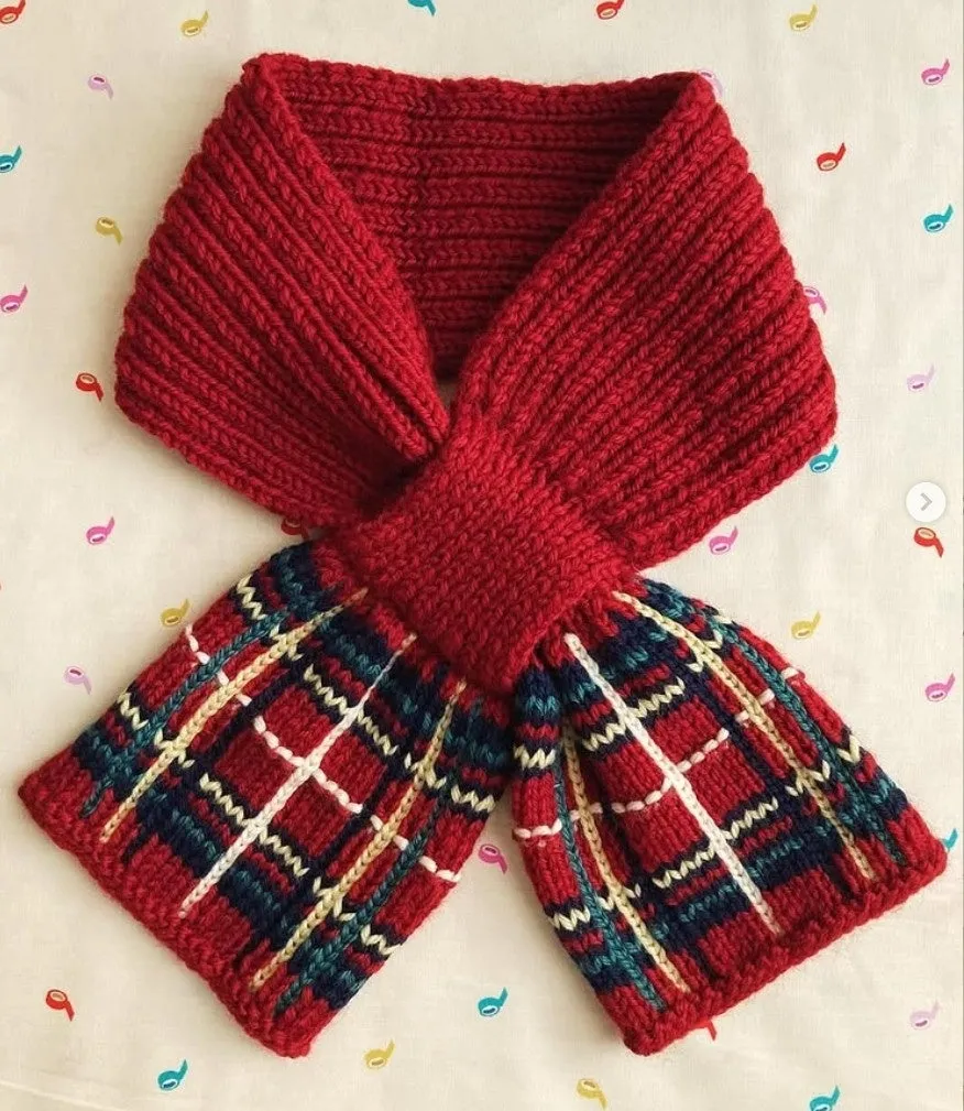 1. ノスタルジックなかわいい編み物~赤いチェックのマフラー~