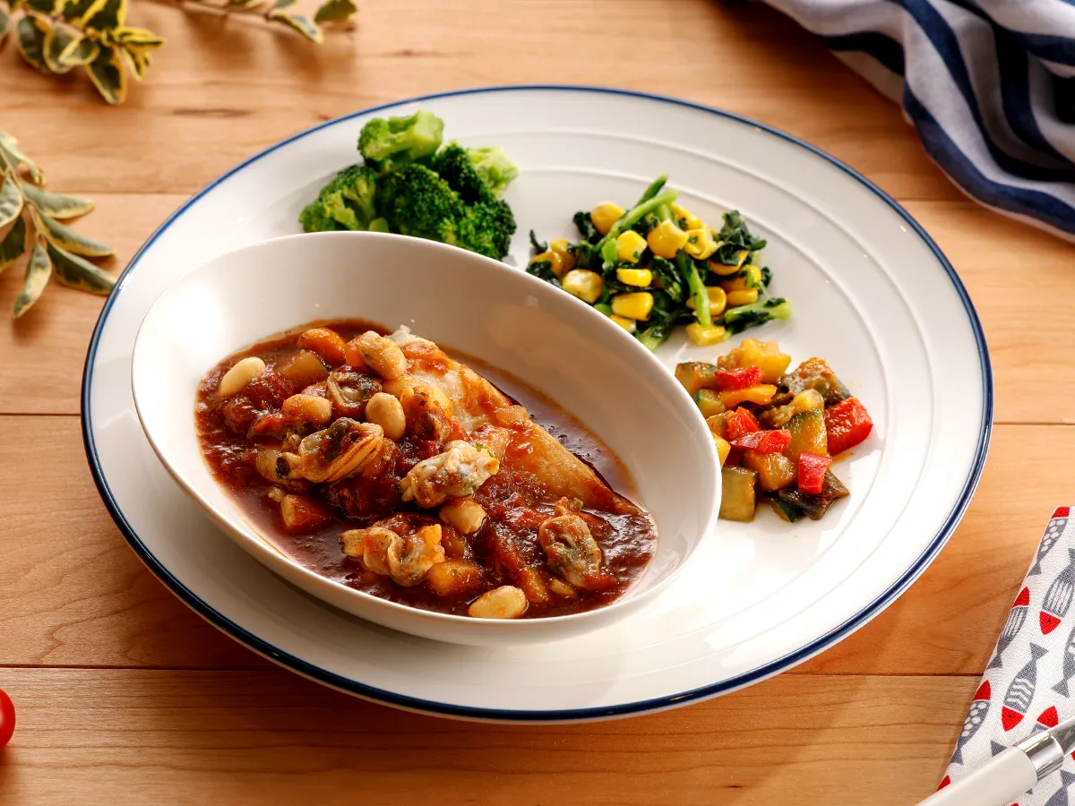 商品名は「白身魚のトマトクラムチャウダー」で、栄養価はカロリー218kcal、たんぱく質20g、糖質11.7g、脂質8.5g、塩分1.8gとされています。冷凍食品として、冷凍庫に常備しやすい形状になっており、温めるだけで手軽に美味しい食事を楽しむことができます。また、製品は兵庫県の自社工場で生産され、最新の調理器具を使用し、厳重な衛生管理の下で作られています。これにより、冷凍でも美味しさをキープした状態でお届けされることが保証されています。