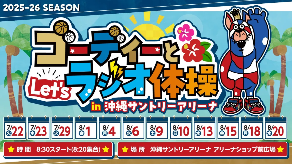 沖縄の夏が本格化する中、沖縄サントリーアリーナでは地域の皆さんが健康的な朝を迎えるためのイベント「ゴーディーとLet’s ラジオ体操」がスタートしました。この取り組みは、琉球ゴールデンキングスが主催するもので、おおきなわ事業の一環として、県民が気軽に参加できる機会を提供することを目的としています。