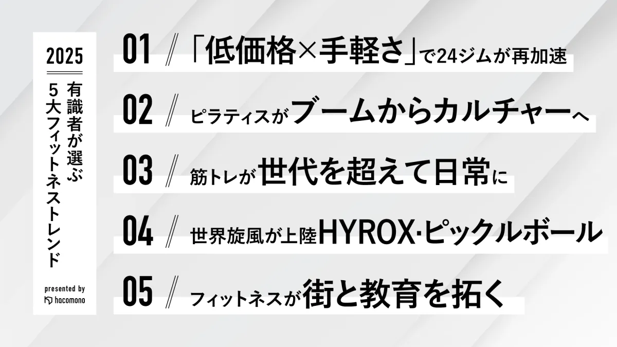 2025年のフィットネスがどのように展開していくのか、ますます目が離せません。詳細はhacomonoのYouTubeチャンネルでご覧いただけます: