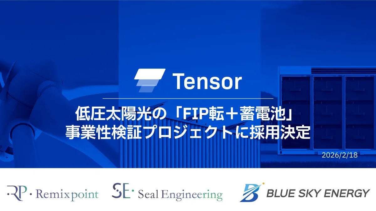 この度、同社は株式会社リミックスポイントおよびその子会社である株式会社シールエンジニアリング、さらにブルースカイエナジー株式会社との協力により、FIP(フィードインプレミアム)制度を活用した低圧太陽光発電所の最適運営計画を検証します。このプロジェクトは、いわゆる「FIP転+蓄電池」をテーマとしており、各社が蓄電システムを導入し、Tensor Cloudの技術を駆使して発電から売電にかけて全体の運用を最適化しようとしています。