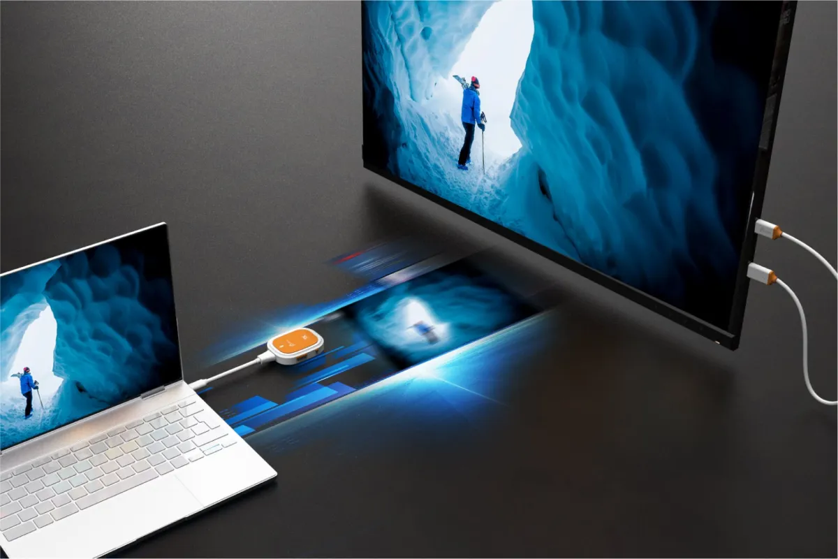 本製品は、USB-Cポートを搭載するスマートフォン、タブレット、PCの画面をワイヤレスでHDMI携帯用の大画面に映し出すことができる送受信機です。煩わしい設定は一切不要で、簡単なプラグ&プレイ方式により、電化製品に不慣れな方でも容易に利用できます。電源供給はUSB-Cケーブルによって行われ、別途のACアダプターは必要ないため、電源から離れた場所でも快適に使用できます。