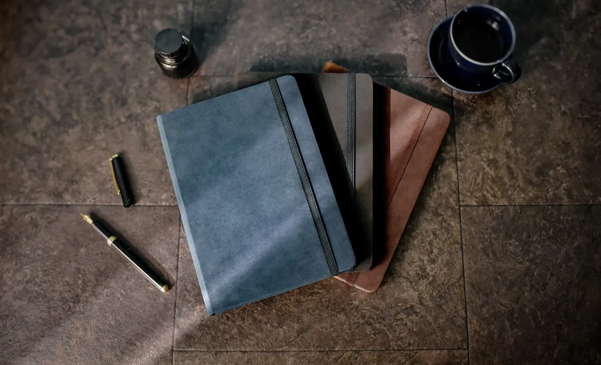 マットPU製の表紙は、手触りがよく洗練されたデザインです。特に同色のゴムバンドが加わることで、本体の美しさを引き立てます。角を丸く仕上げることで、柔らかな印象を与え、バッグの中でも品良く収まります。