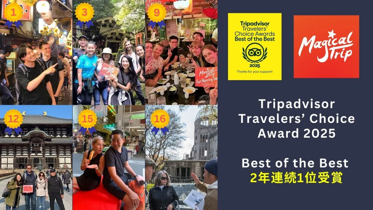 訪日外国人向けのローカル体験を提供する「MagicalTrip」が、世界最大級の旅行口コミサイトであるトリップアドバイザーの「トラベラーズチョイス ベスト・オブ・ザ・ベスト」アワードにおいて、2025年度の第1位を獲得しました。この栄誉は、同社が展開する「Tokyo Bar Hopping Tour in Shinjuku」が旅行者の評価ランキングで2年連続の首位を引き当てたことと、他のツアーも高評価を得ていることを示しています。