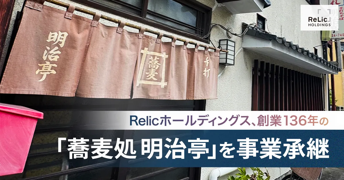 Relicホールディングス、老舗蕎麦店「明治亭」を承継